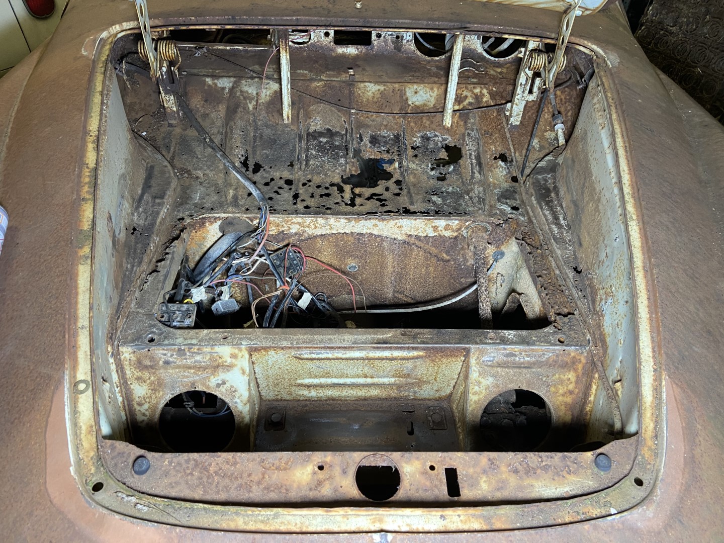 However, looking up the chassis number on specialist websites such as The Karmann Ghia Connection Website (Link 'here') I know that it was produced in 1960, and there are classic crossover car features which support this year, such as the early oval style wheel well with later nostrils, and the one year only steering wheel.
