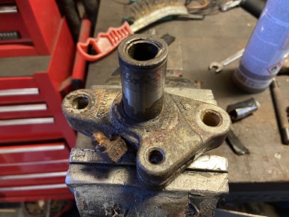 be saved. Three of the four mounting studs had to be replaced which was a difficult job as they were originally cast in. I ended up drilling them out, and tapping the aluminium and then bonding